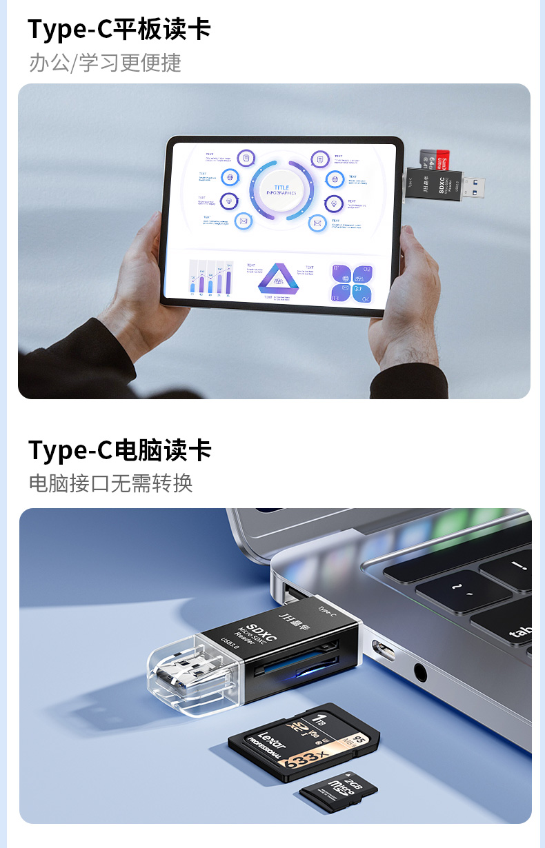 晶华D507 Type-C带线读卡器白色TF+SD