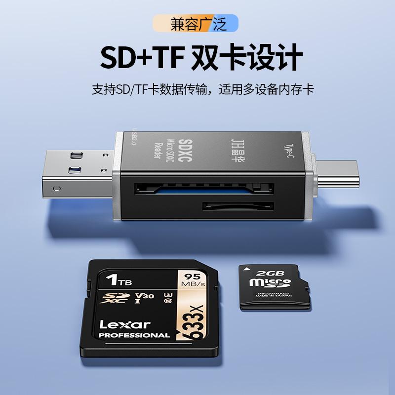 晶华N450 USB2.0二合一读卡器TF+SD 黑白色