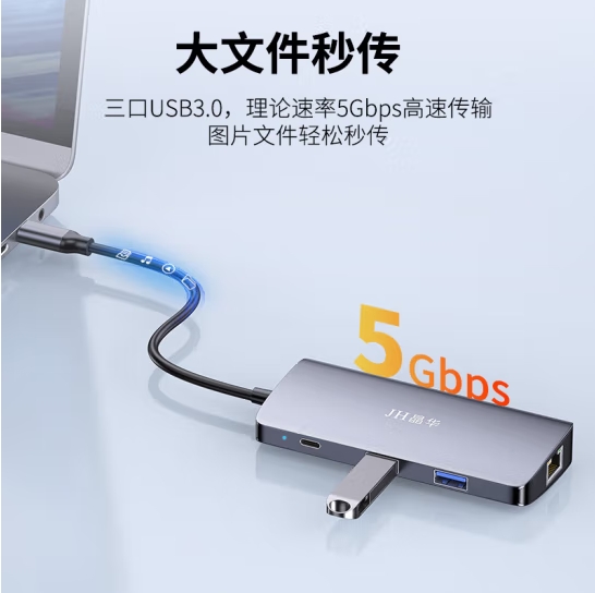 晶华Z325 5合1 C转PD+3.0USB*2+HDMI+RJ45