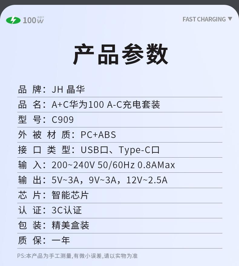 C909 A+C华为100 A-C充电套装
