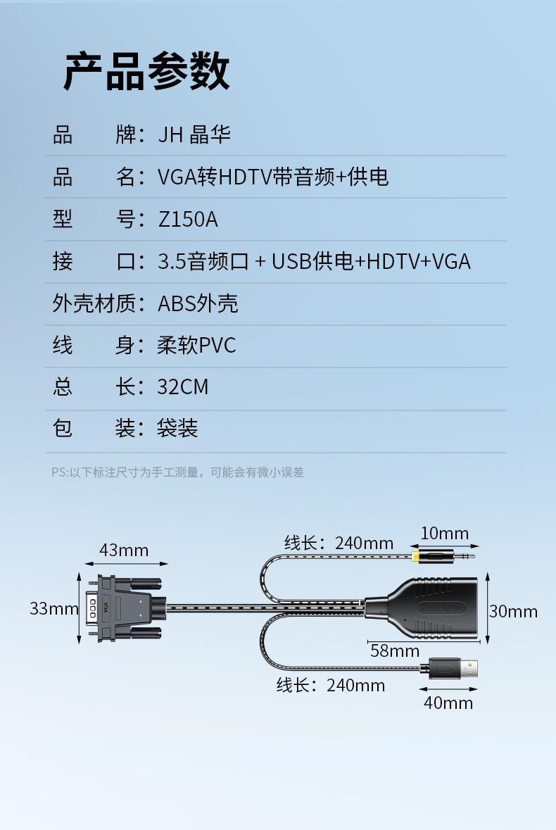 晶华Z700 VGA转HDMI+VGA转换器(带音频供电)