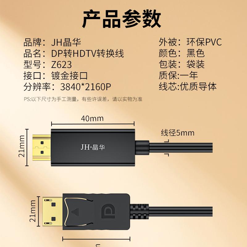 晶华Z623 DP转HDMI转换线4K精英版