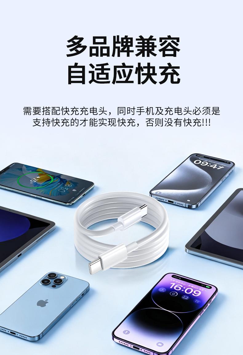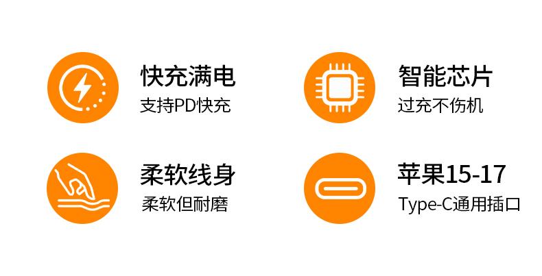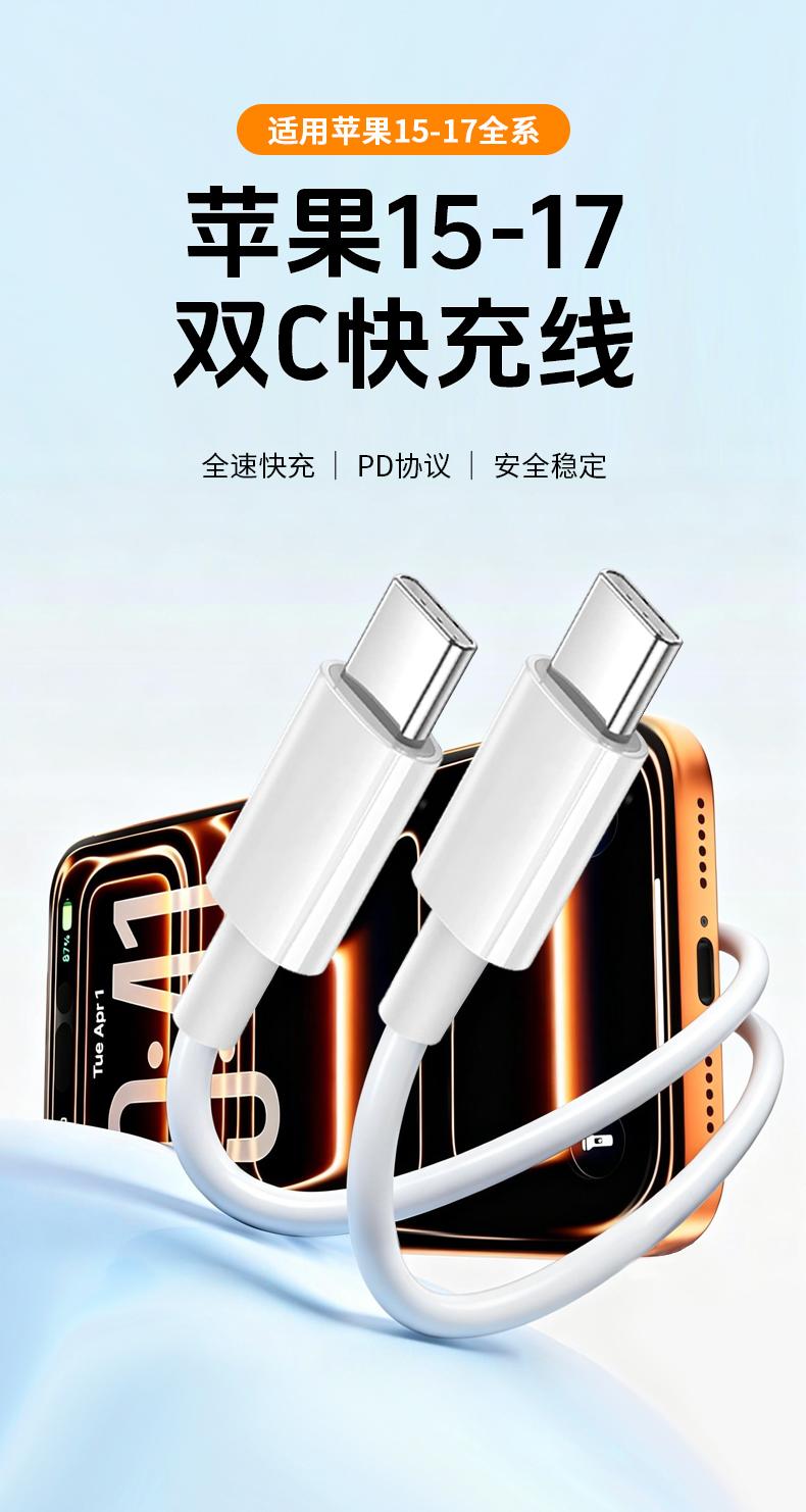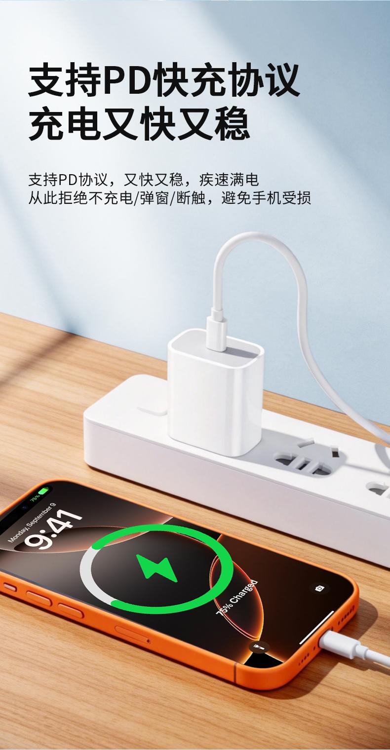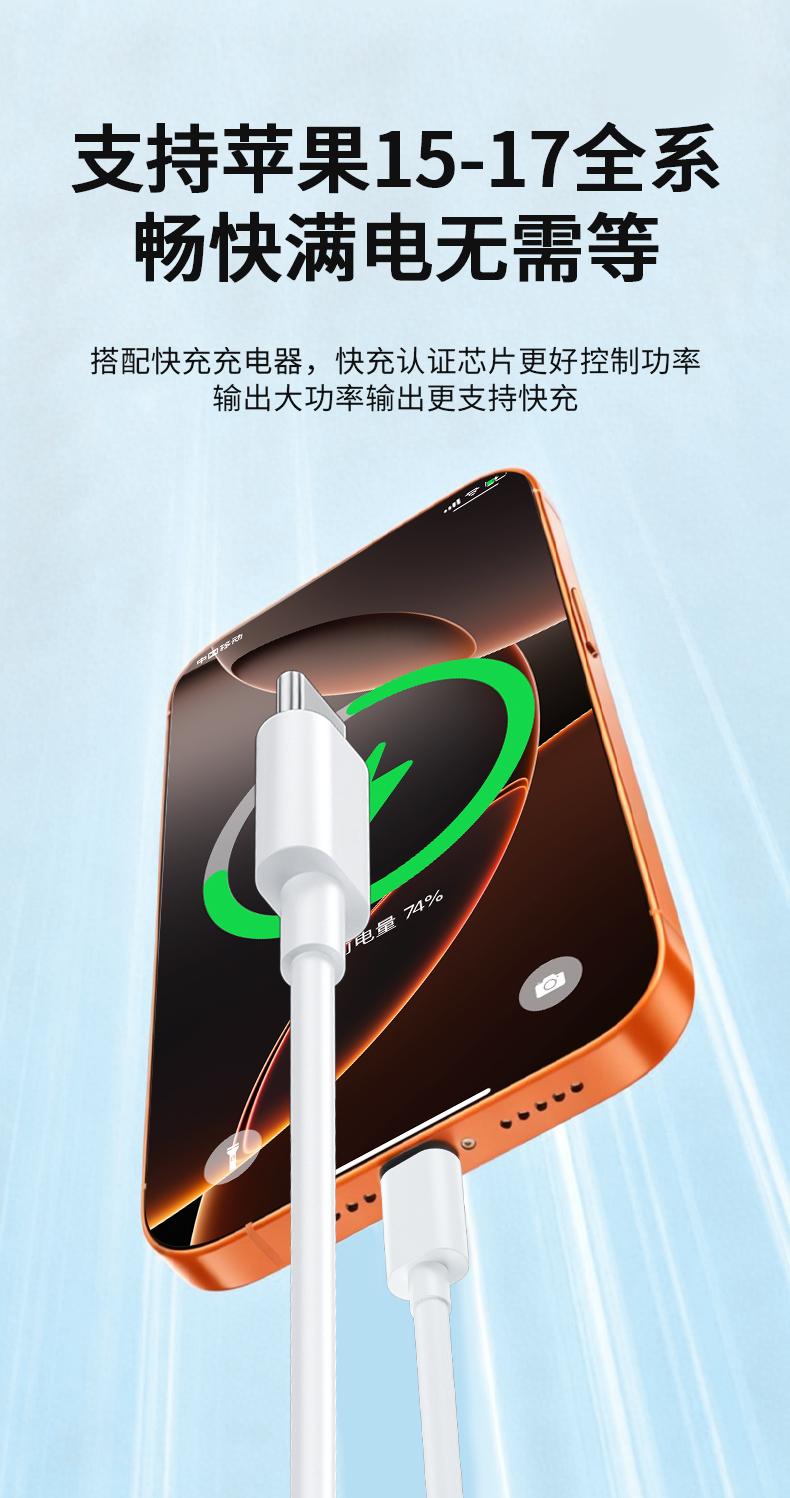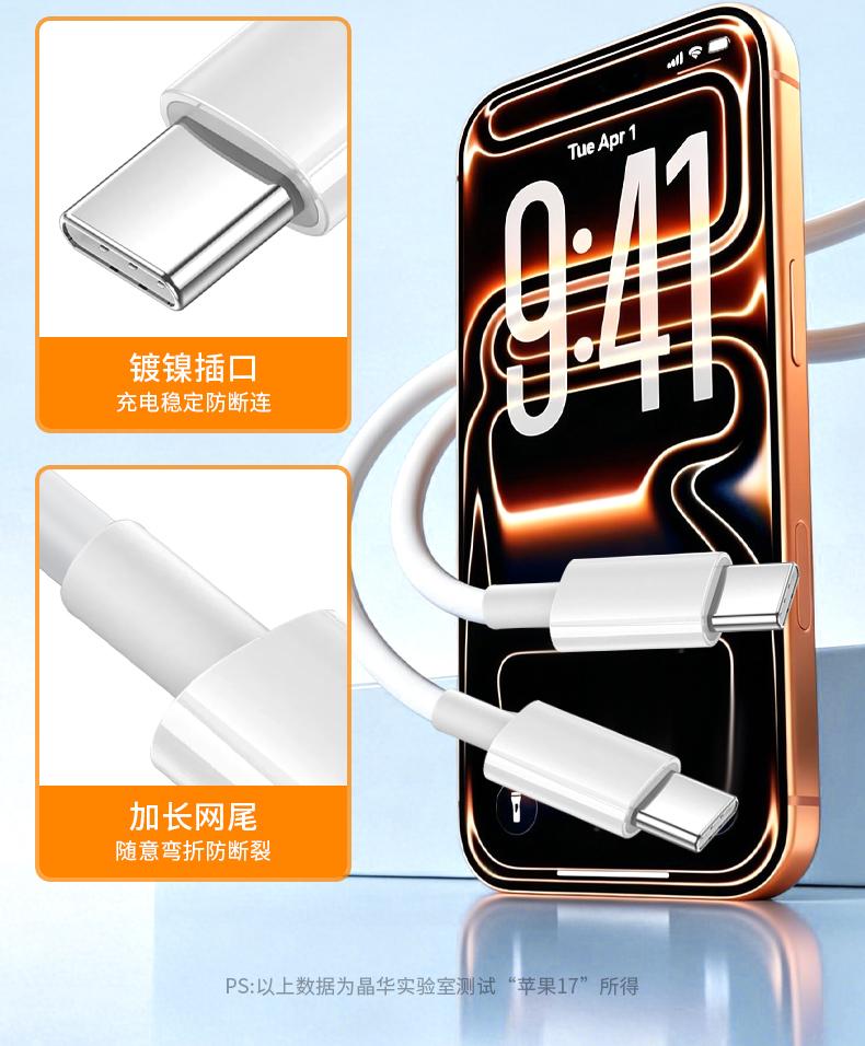 晶华U240 苹果白C对L快充线