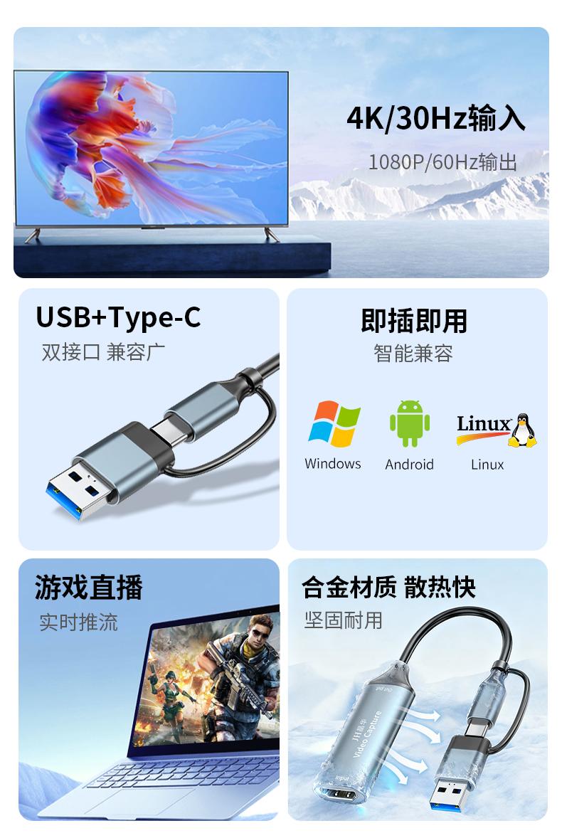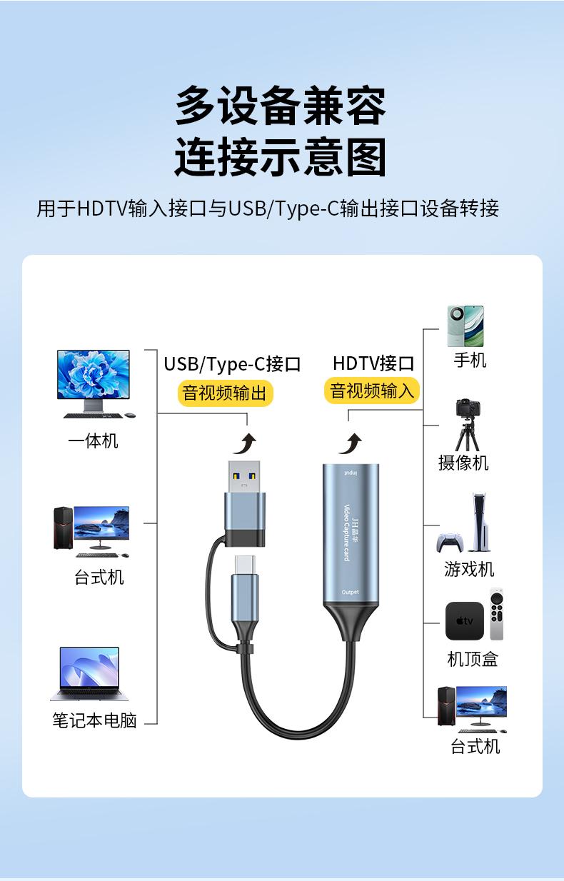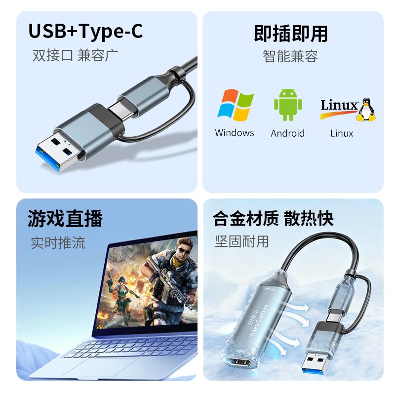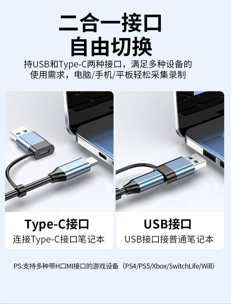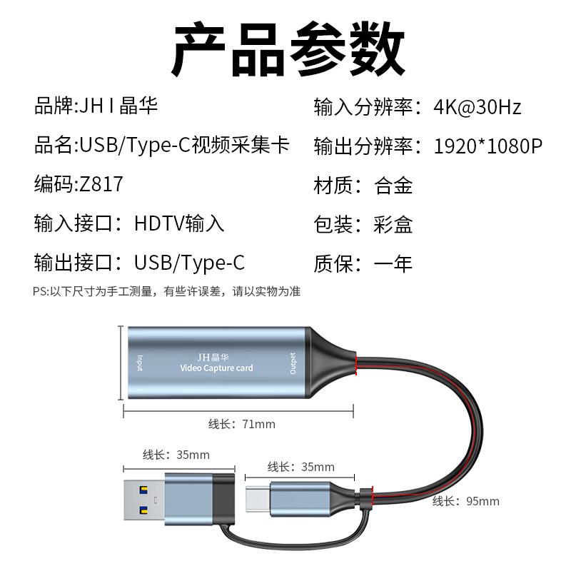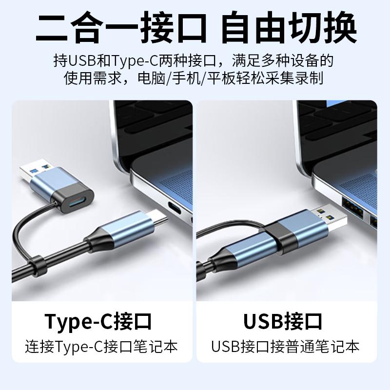 晶华Z817 USB+Type-C双头采集卡1080P
