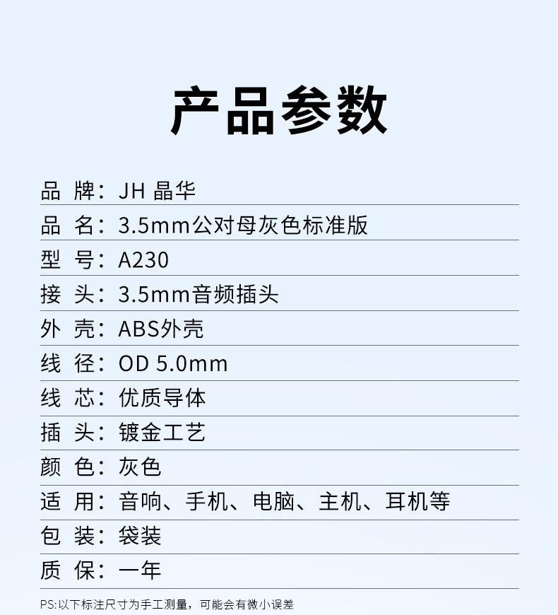 A2303.5mm公对母灰色音频线