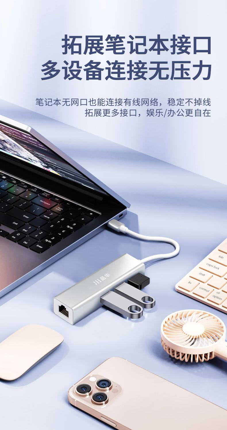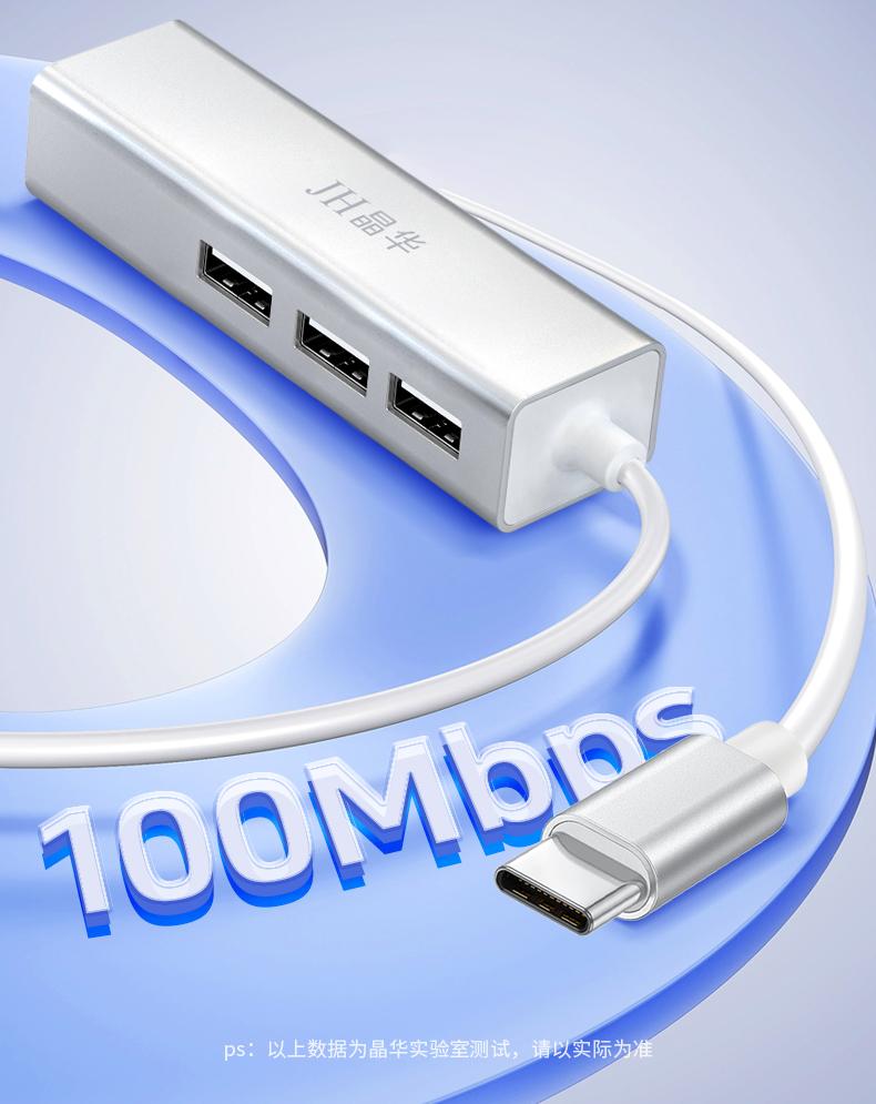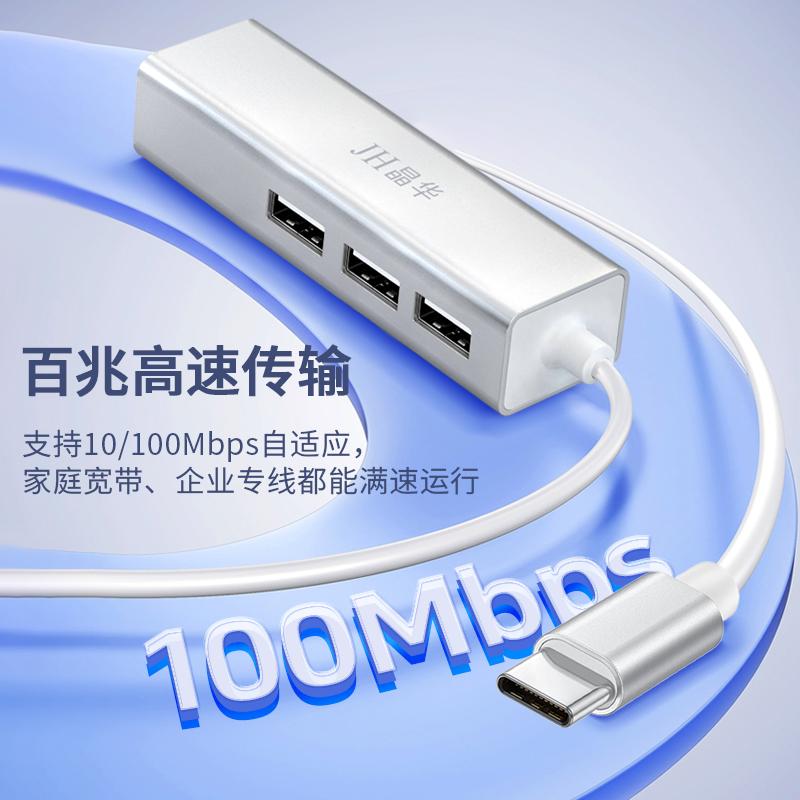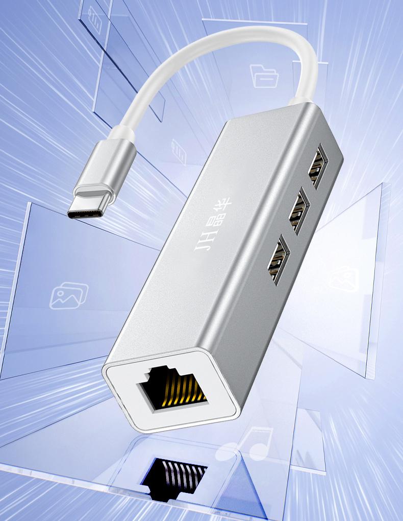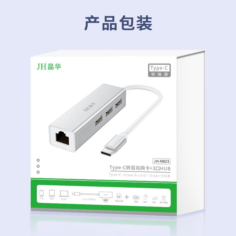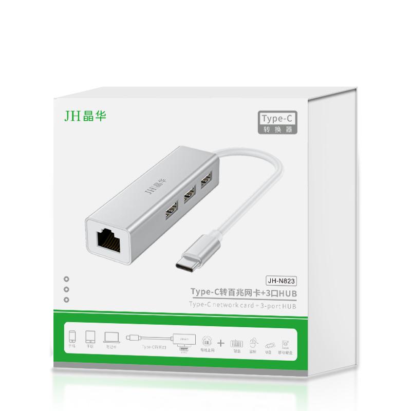N823 Type-C转百兆网卡+3口HUB
