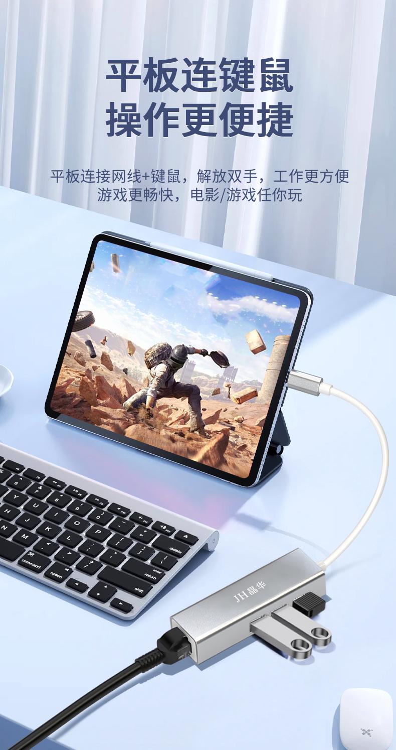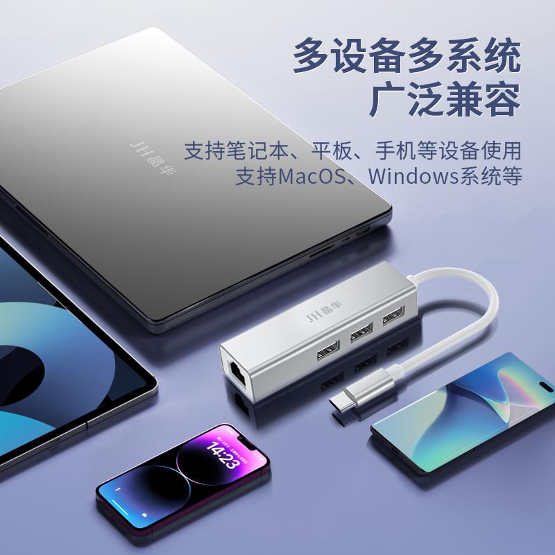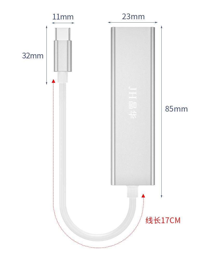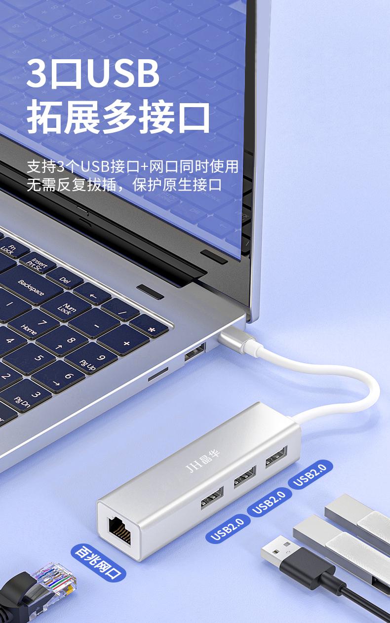 N823 Type-C转百兆网卡+3口HUB