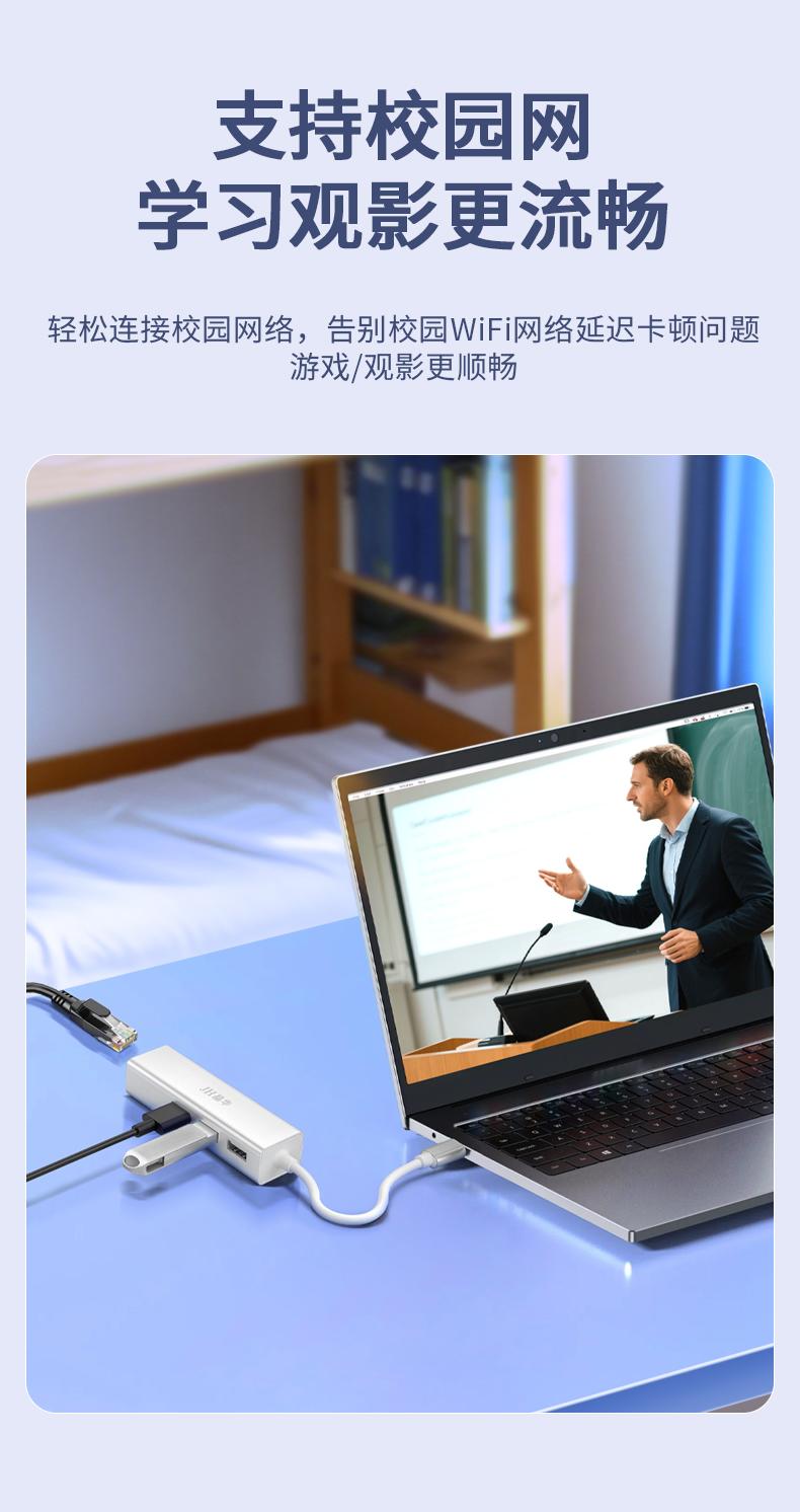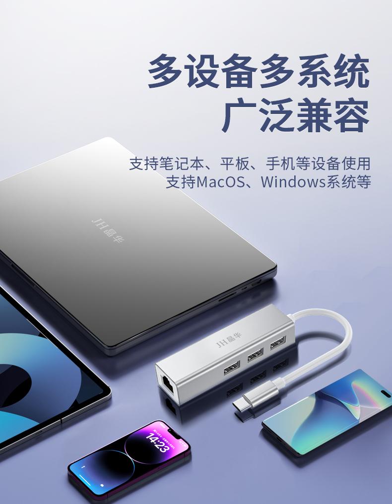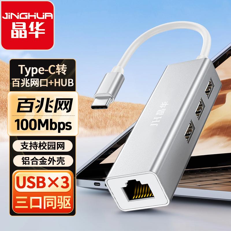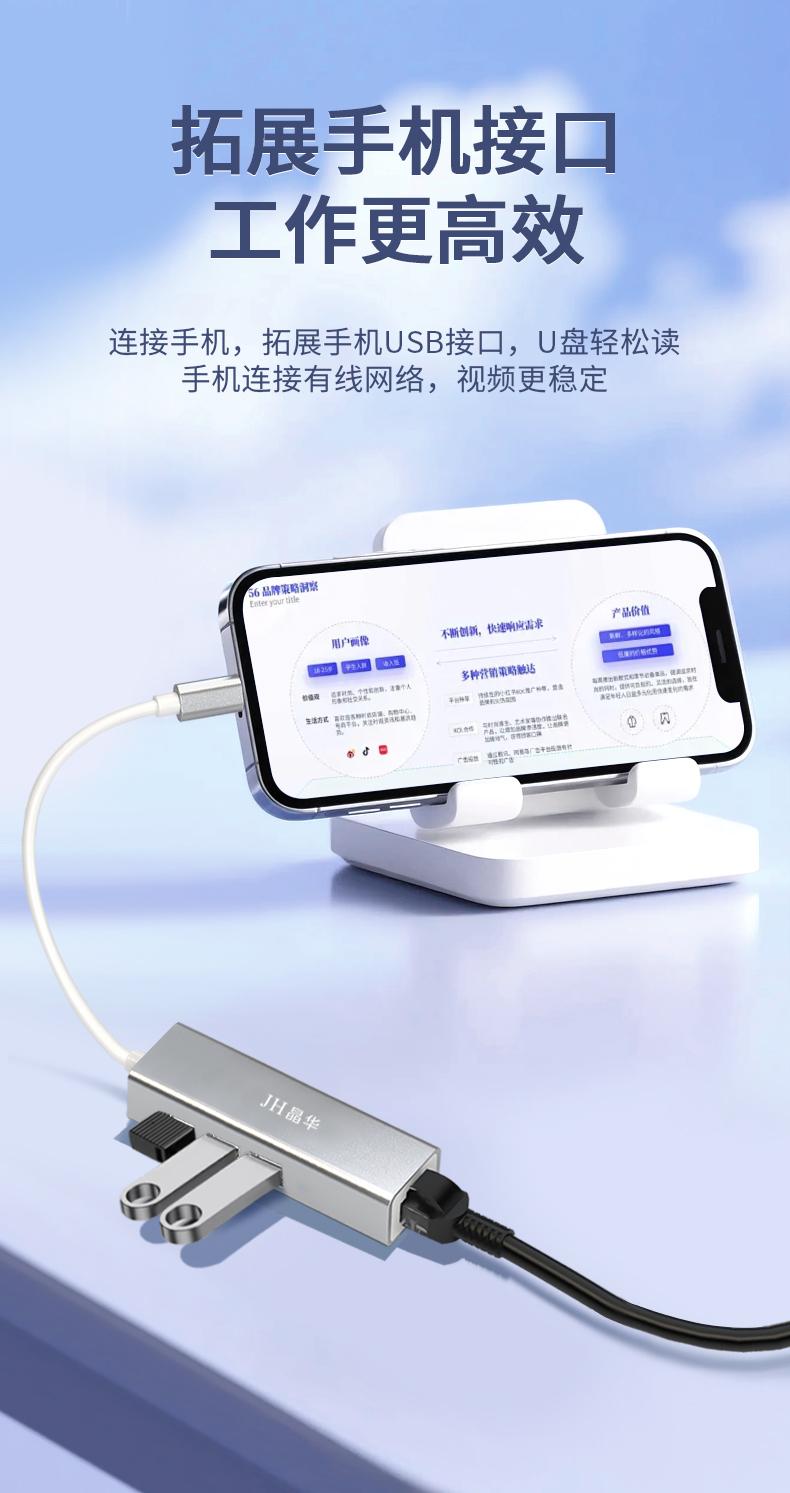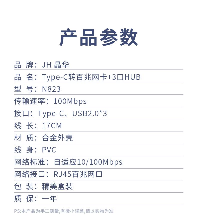 N823 Type-C转百兆网卡+3口HUB
